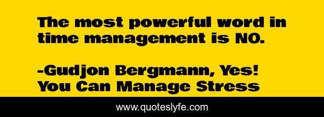 "Gudjon Bergmann, Yes! You Can Manage Stress Quotes." Quoteslyfe.com, 2025. Sat. 06 Dec. 2025. <https://www.quoteslyfe.com/quote/The-most-powerful-word-in-time-management-254479>.