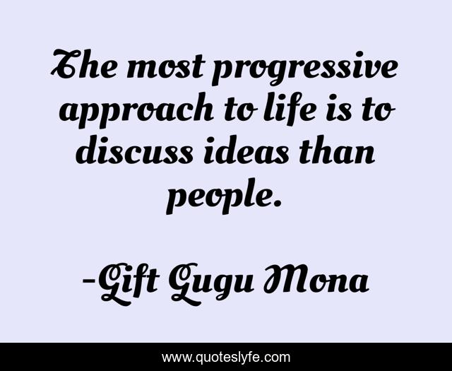 This page presents the quote "The most progressive approach to life is to discuss ideas than people.". Author of this quote is Gift Gugu Mona. This quote is about ideas, approach, discuss, progressive, people,.