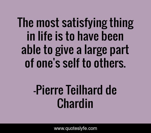 This page presents the quote "The most satisfying thing in life is to have been able to give a large part of one's self to others.". Author of this quote is Pierre Teilhard de Chardin. This quote is about self, satisfying, give,.