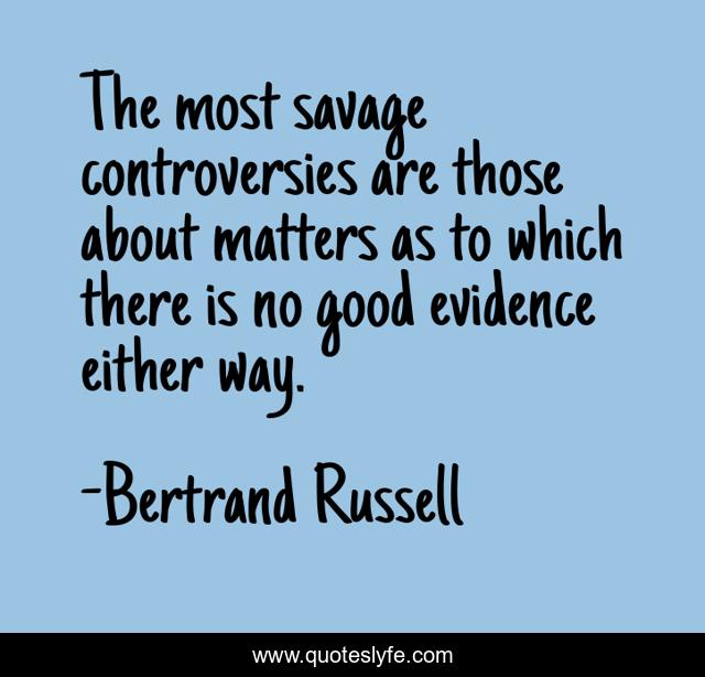 This page presents the quote "The most savage controversies are those about matters as to which there is no good evidence either way.". Author of this quote is Bertrand Russell. This quote is about quarrels, arguments,.