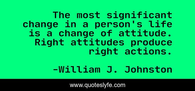 This page presents the quote "The most significant change in a person's life is a change of attitude. Right attitudes produce right actions.". Author of this quote is William J. Johnston. This quote is about positive, confidence, creating, change,.