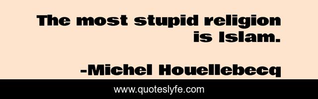 This page presents the quote "The most stupid religion is Islam.". Author of this quote is Michel Houellebecq. This quote is about most, stupid, islam,.