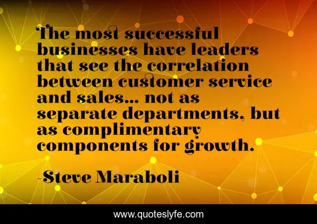 This page presents the quote "The most successful businesses have leaders that see the correlation between customer service and sales… not as separate departments, but as complimentary components for growth.". Author of this quote is Steve Maraboli. This quote is about business, customers, leaders, success,.