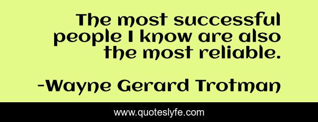 This page presents the quote "The most successful people I know are also the most reliable.". Author of this quote is Wayne Gerard Trotman. This quote is about reliable, reliability, successful-living, success, successful-people,.