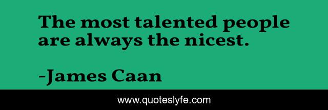 This page presents the quote "The most talented people are always the nicest.". Author of this quote is James Caan. This quote is about talent, psychology, people, james-caan, actor, wisdom, actors,.