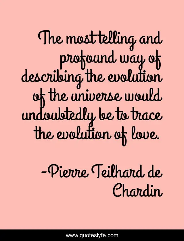 This page presents the quote "The most telling and profound way of describing the evolution of the universe would undoubtedly be to trace the evolution of love.". Author of this quote is Pierre Teilhard de Chardin. This quote is about science, spirituality,.