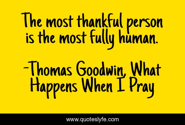This page presents the quote "The most thankful person is the most fully human.". Author of this quote is Thomas Goodwin, What Happens When I Pray. This quote is about thankfulness, god, jesus,.
