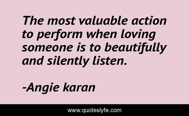 This page presents the quote "The most valuable action to perform when loving someone is to beautifully and silently listen.". Author of this quote is Angie karan. This quote is about action, valuable-action, angie-karan, listen,.