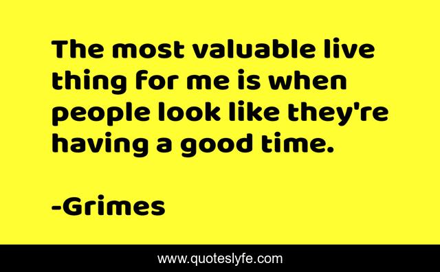 This page presents the quote "The most valuable live thing for me is when people look like they're having a good time.". Author of this quote is Grimes. This quote is about me, having a good time, good,.