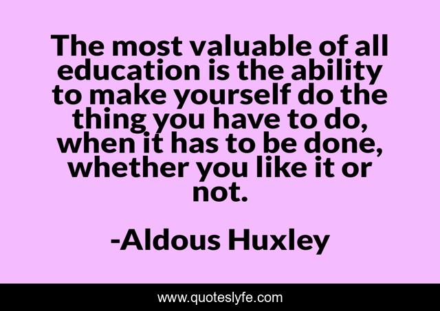 "Aldous Huxley Quotes." Quoteslyfe.com, 2025. Tue. 09 Dec. 2025. <https://www.quoteslyfe.com/quote/The-most-valuable-of-all-education-is-322033>.
