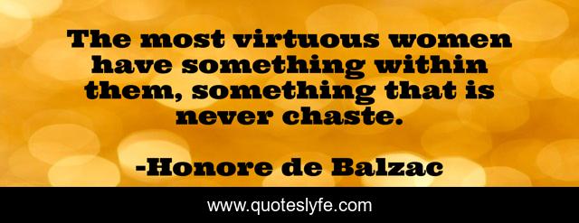 This page presents the quote "The most virtuous women have something within them, something that is never chaste.". Author of this quote is Honore de Balzac. This quote is about within, something,.
