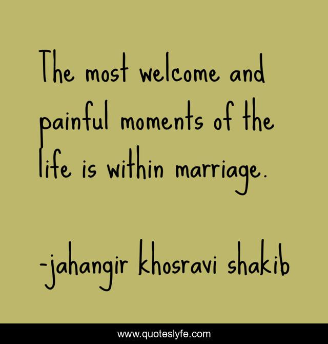 This page presents the quote "The most welcome and painful moments of the life is within marriage.". Author of this quote is jahangir khosravi shakib. This quote is about marriage, life-and-living, pain,.
