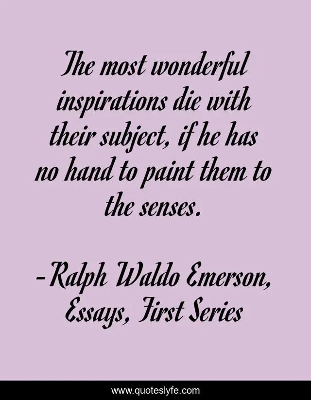 This page presents the quote "The most wonderful inspirations die with their subject, if he has no hand to paint them to the senses.". Author of this quote is Ralph Waldo Emerson, Essays, First Series. This quote is about living, inspirations, creativity, resilience, bravery,.
