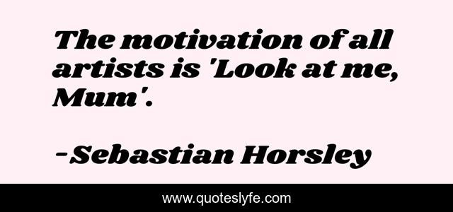 This page presents the quote "The motivation of all artists is 'Look at me, Mum'.". Author of this quote is Sebastian Horsley. This quote is about motivation, art, artists,.