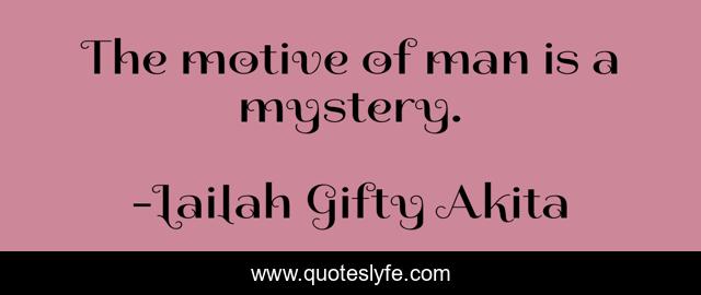 This page presents the quote "The motive of man is a mystery.". Author of this quote is Lailah Gifty Akita. This quote is about mystery, confidence, positive, motivational, motive, intention, humankind, optimistic,.
