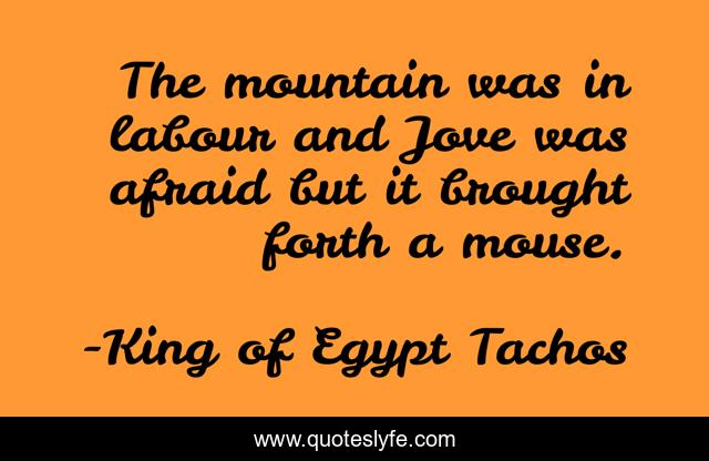 This page presents the quote "The mountain was in labour and Jove was afraid but it brought forth a mouse.". Author of this quote is King of Egypt Tachos. .