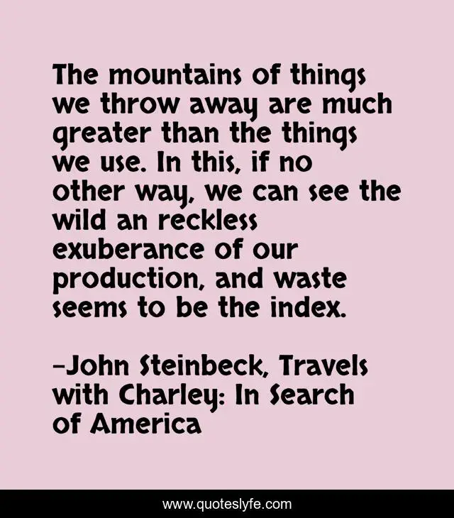 "John Steinbeck, Travels with Charley: In Search of America Quotes." Quoteslyfe.com, 2025. Sat. 06 Dec. 2025. <https://www.quoteslyfe.com/quote/The-mountains-of-things-we-throw-away-216290>.