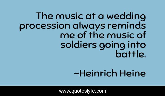 This page presents the quote "The music at a wedding procession always reminds me of the music of soldiers going into battle.". Author of this quote is Heinrich Heine. This quote is about marriage, music, war, soldiers,.