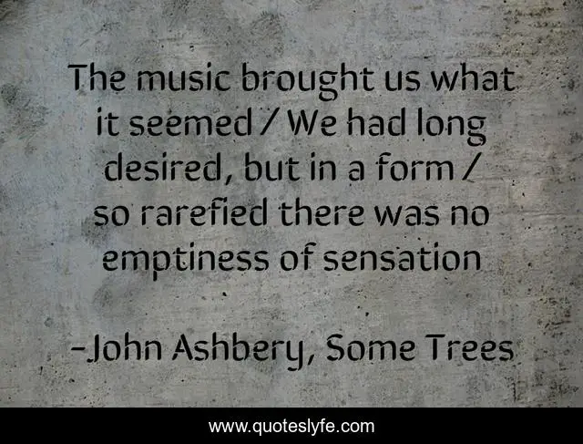 "John Ashbery, Some Trees Quotes." Quoteslyfe.com, 2025. Fri. 05 Dec. 2025. <https://www.quoteslyfe.com/quote/The-music-brought-us-what-it-seemed-79036>.