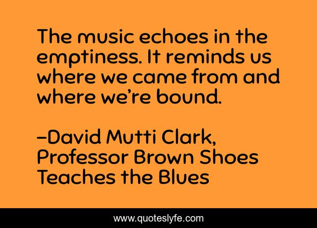 "David Mutti Clark, Professor Brown Shoes Teaches the Blues Quotes." Quoteslyfe.com, 2025. Fri. 05 Dec. 2025. <https://www.quoteslyfe.com/quote/The-music-echoes-in-the-emptiness-It-44088>.