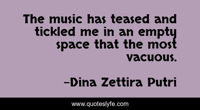 This page presents the quote "The music has teased and tickled me in an empty space that the most vacuous.". Author of this quote is Dina Zettira Putri. This quote is about vacuous, feelings, music, empty, space,.