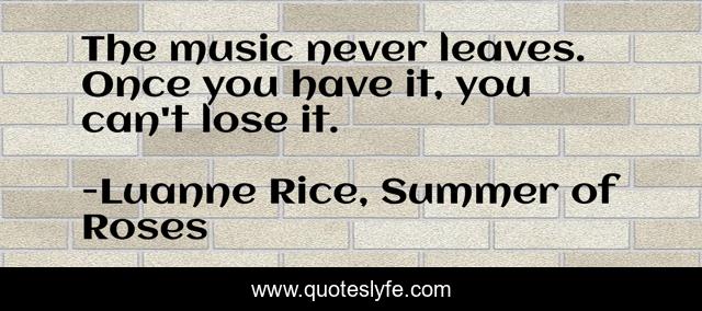 This page presents the quote "The music never leaves. Once you have it, you can't lose it.". Author of this quote is Luanne Rice, Summer of Roses. .