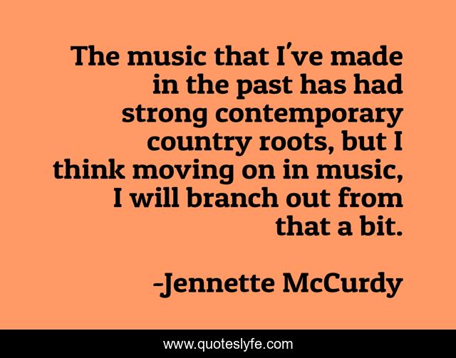 This page presents the quote "The music that I've made in the past has had strong contemporary country roots, but I think moving on in music, I will branch out from that a bit.". Author of this quote is Jennette McCurdy. This quote is about past, strong, music,.