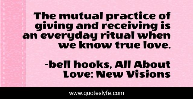 This page presents the quote "The mutual practice of giving and receiving is an everyday ritual when we know true love.". Author of this quote is bell hooks, All About Love: New Visions. This quote is about giving, love, affection,.