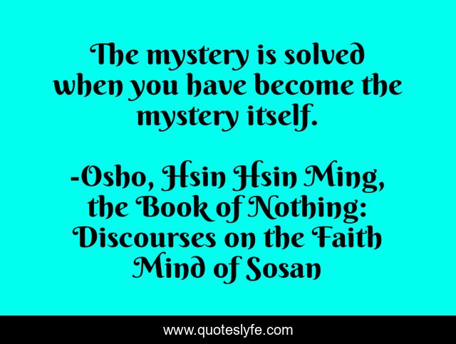 "Osho, Hsin Hsin Ming, the Book of Nothing: Discourses on the Faith Mind of Sosan Quotes." Quoteslyfe.com, 2025. Fri. 05 Dec. 2025. <https://www.quoteslyfe.com/quote/The-mystery-is-solved-when-you-have-146147>.