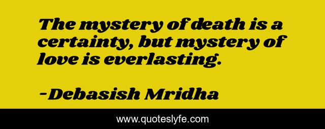 This page presents the quote "The mystery of death is a certainty, but mystery of love is everlasting.". Author of this quote is Debasish Mridha. This quote is about life, love, knowledge, inspirational, intelligence, philosophy, wisdom, quotes, affection,.