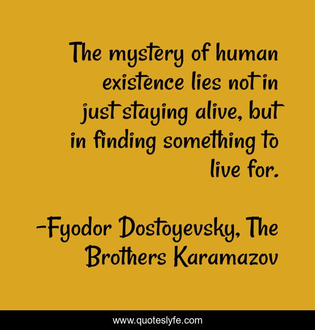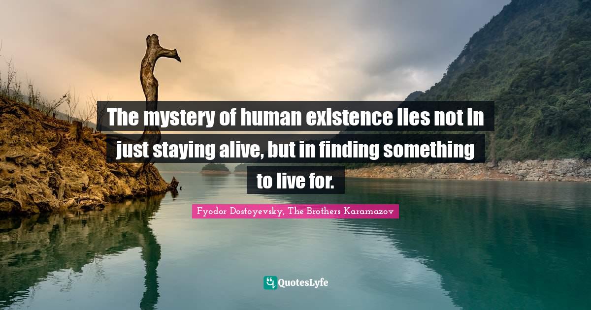 "Fyodor Dostoyevsky, The Brothers Karamazov Quotes." Quoteslyfe.com, 2026. Wed. 14 Jan. 2026. <https://www.quoteslyfe.com/quote/The-mystery-of-human-existence-lies-not-256298>.