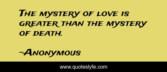 This page presents the quote "The mystery of love is greater than the mystery of death.". Author of this quote is Anonymous. .