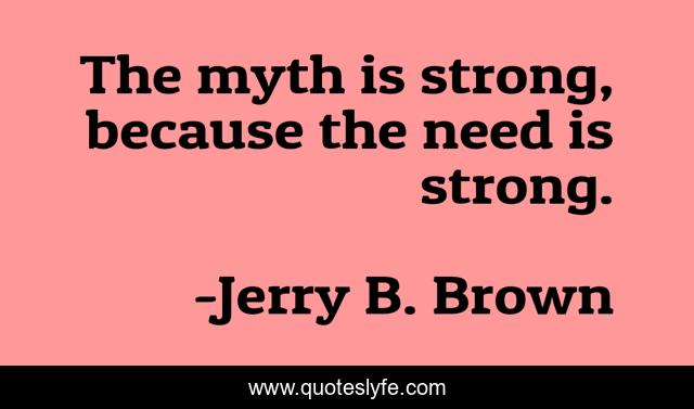 "Jerry B. Brown Quotes." Quoteslyfe.com, 2025. Fri. 05 Dec. 2025. <https://www.quoteslyfe.com/quote/The-myth-is-strong-because-the-need-145539>.