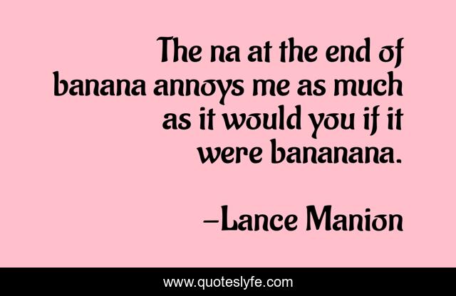 This page presents the quote "The na at the end of banana annoys me as much as it would you if it were bananana.". Author of this quote is Lance Manion. This quote is about funny, dumb, comedy, humor,.
