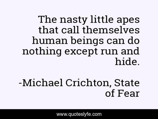 This page presents the quote "The nasty little apes that call themselves human beings can do nothing except run and hide.". Author of this quote is Michael Crichton, State of Fear. .
