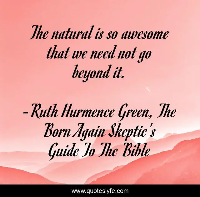 "Ruth Hurmence Green, The Born Again Skeptic's Guide To The Bible Quotes." Quoteslyfe.com, 2025. Mon. 08 Dec. 2025. <https://www.quoteslyfe.com/quote/The-natural-is-so-awesome-that-we-29921>.