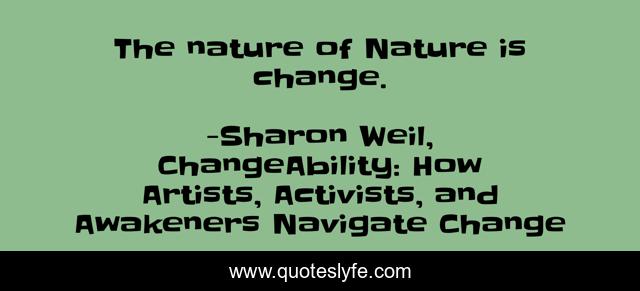 "Sharon Weil, ChangeAbility: How Artists, Activists, and Awakeners Navigate Change Quotes." Quoteslyfe.com, 2025. Sun. 07 Dec. 2025. <https://www.quoteslyfe.com/quote/The-nature-of-Nature-is-change-59932>.