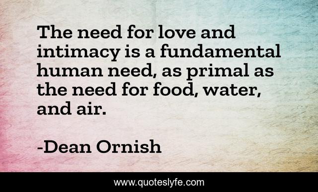 This page presents the quote "The need for love and intimacy is a fundamental human need, as primal as the need for food, water, and air.". Author of this quote is Dean Ornish. This quote is about water, love, human, affection,.