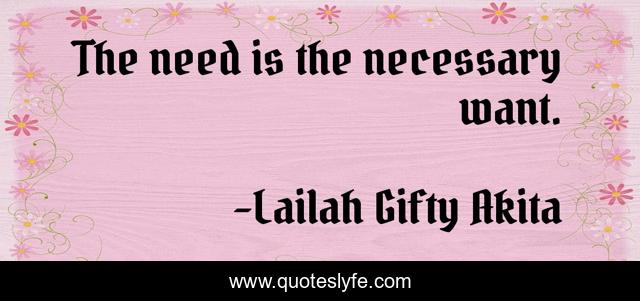 "Lailah Gifty Akita Quotes." Quoteslyfe.com, 2025. Sat. 06 Dec. 2025. <https://www.quoteslyfe.com/quote/The-need-is-the-necessary-want-140196>.