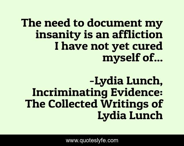 "Lydia Lunch, Incriminating Evidence: The Collected Writings of Lydia Lunch Quotes." Quoteslyfe.com, 2025. Fri. 05 Dec. 2025. <https://www.quoteslyfe.com/quote/The-need-to-document-my-insanity-is-232704>.