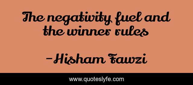 This page presents the quote "The negativity fuel and the winner rules". Author of this quote is Hisham Fawzi. This quote is about negative-people, winning, life-lessons, wisdom,.
