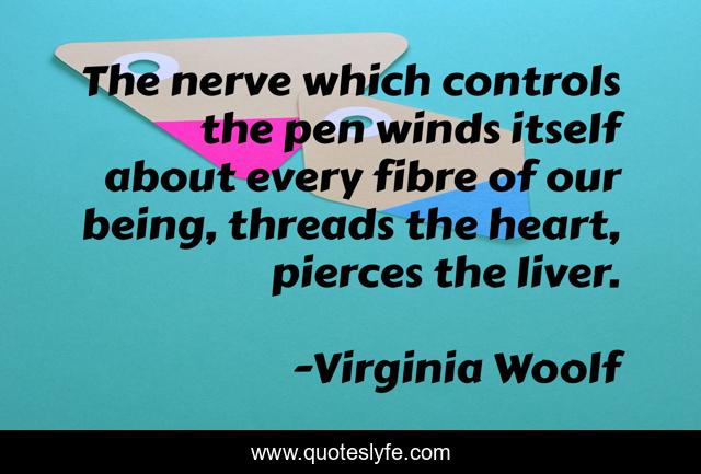 This page presents the quote "The nerve which controls the pen winds itself about every fibre of our being, threads the heart, pierces the liver.". Author of this quote is Virginia Woolf. This quote is about writing-process, writing,.