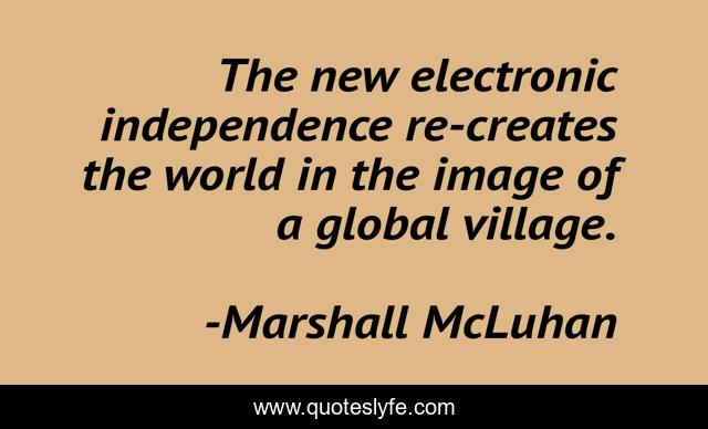 This page presents the quote "The new electronic independence re-creates the world in the image of a global village.". Author of this quote is Marshall McLuhan. This quote is about world, technology, new,.