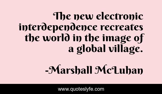 This page presents the quote "The new electronic interdependence recreates the world in the image of a global village.". Author of this quote is Marshall McLuhan. .