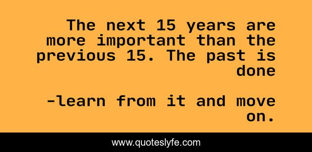 This page presents the quote "The next 15 years are more important than the previous 15. The past is done". Author of this quote is learn from it and move on.. .