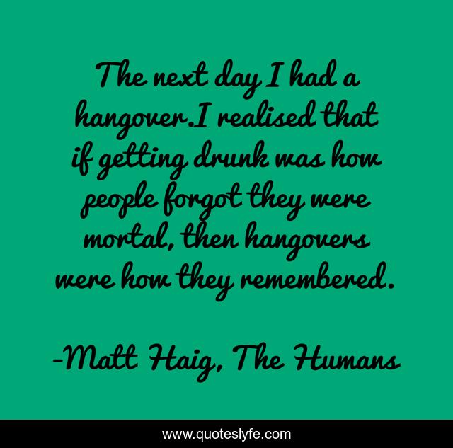 "Matt Haig, The Humans Quotes." Quoteslyfe.com, 2025. Sun. 07 Dec. 2025. <https://www.quoteslyfe.com/quote/The-next-day-I-had-a-hangover-207678>.