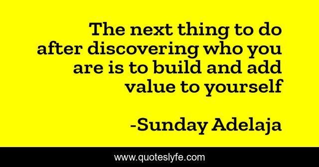 This page presents the quote "The next thing to do after discovering who you are is to build and add value to yourself". Author of this quote is Sunday Adelaja. This quote is about life, blessing, finance, money, work, wisdom, time-well-spent, job, joblessness,.