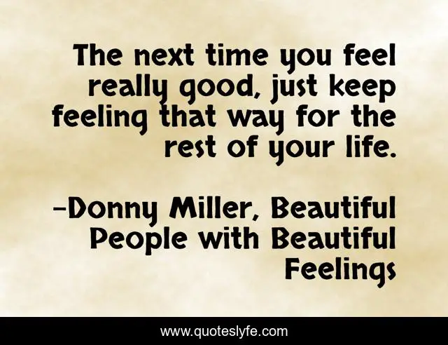 "Donny Miller, Beautiful People with Beautiful Feelings Quotes." Quoteslyfe.com, 2025. Sat. 06 Dec. 2025. <https://www.quoteslyfe.com/quote/The-next-time-you-feel-really-good-17625>.