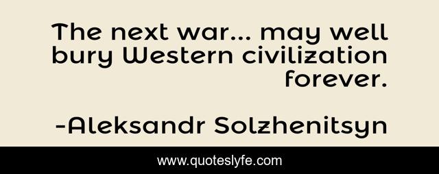 This page presents the quote "The next war... may well bury Western civilization forever.". Author of this quote is Aleksandr Solzhenitsyn. This quote is about forever, civilization, well,.
