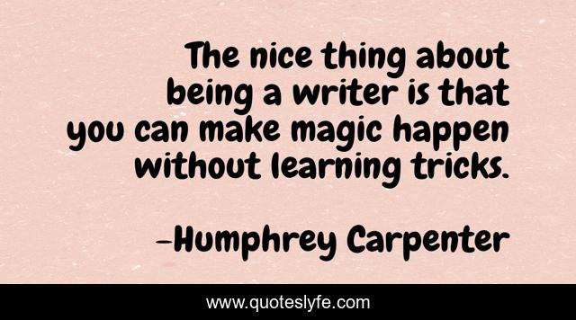 This page presents the quote "The nice thing about being a writer is that you can make magic happen without learning tricks.". Author of this quote is Humphrey Carpenter. This quote is about magic, nice,.